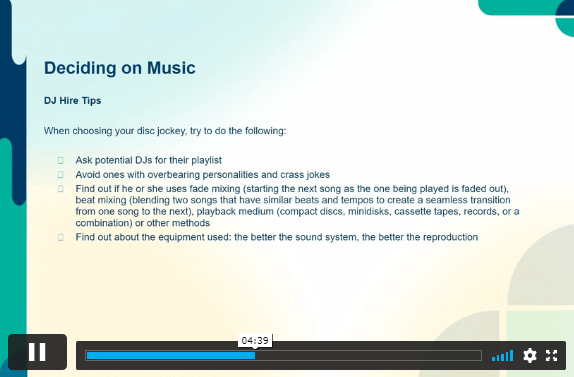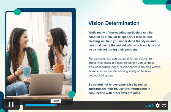 | Module 2: Wedding Food, Drink and the Wedding Cake | 00:11:00 | ||